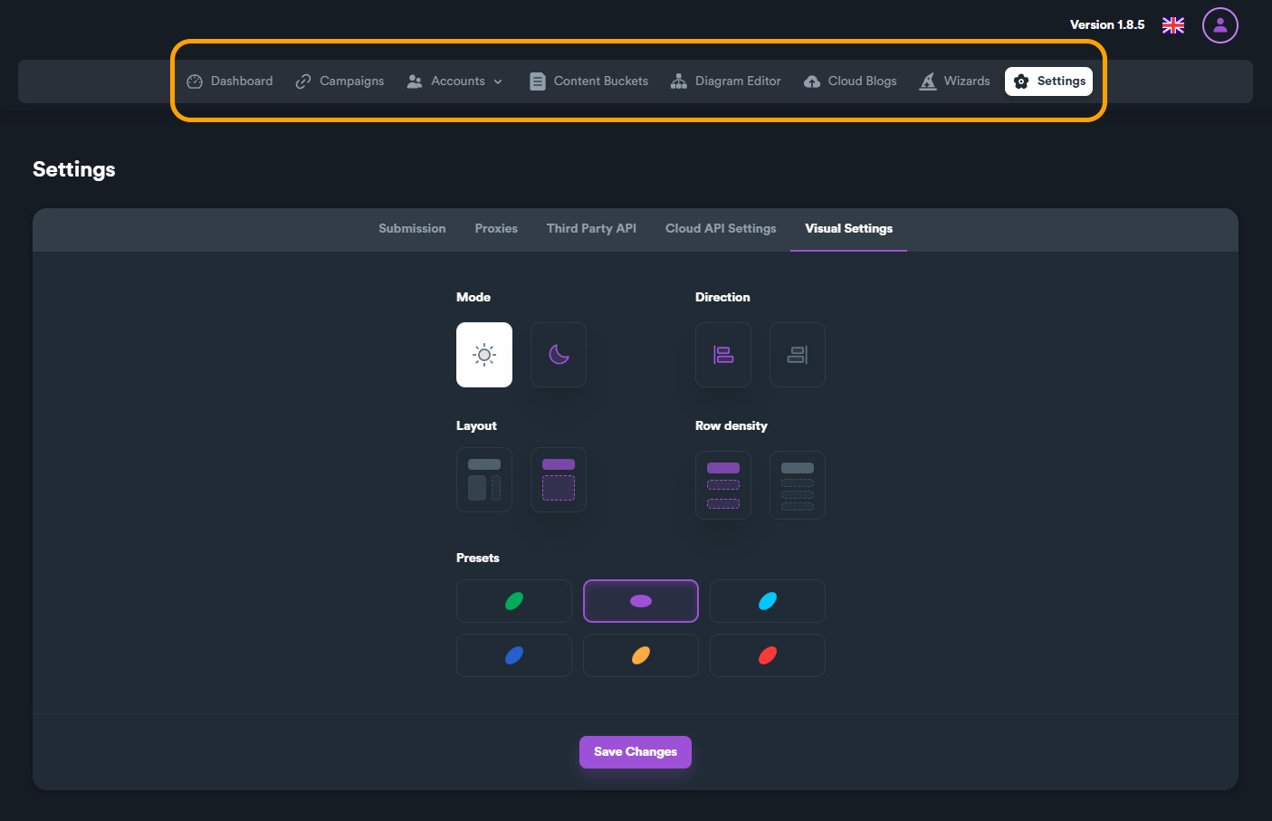 To change between different UI languages, click on the flag located on the top-right section and choose your language.