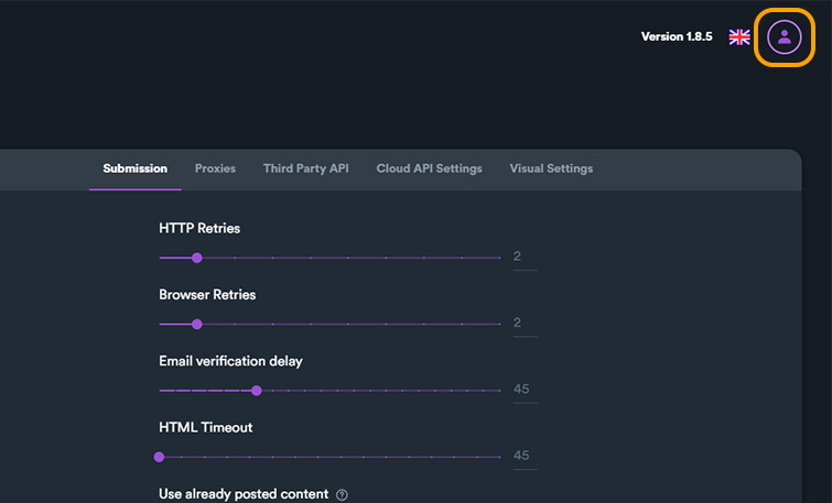 This menu is located on the top-right of the software (account/profile icon). From this menu the user can visit SEO Neo's website, open documentation, check for an update and check his membership. From account menu you can also export Debug Report.