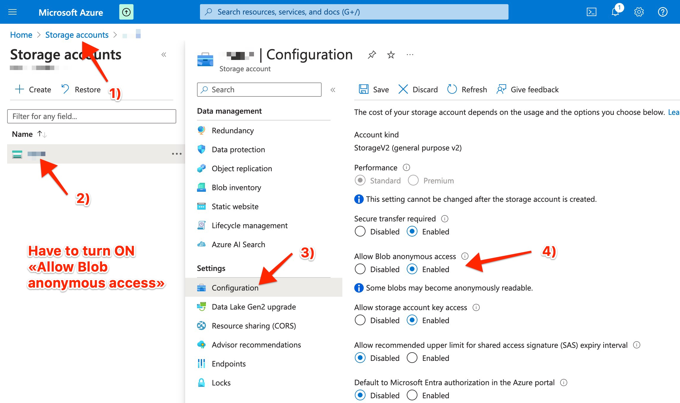 ### **Important : Enabling Allow Blob Anonymous Access**
