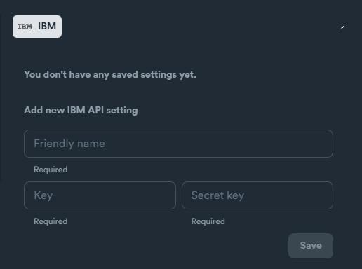 ### IBM API Settings