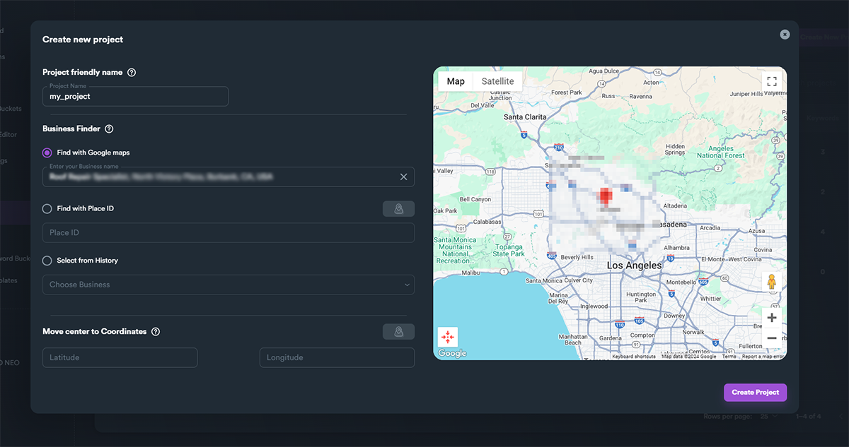 You can create only one project for each business profile. Within each project you can have different keywords and different heatmaps. This way SEO Neo can track your business rankings on different keywords and generate detailed analytics for your business.