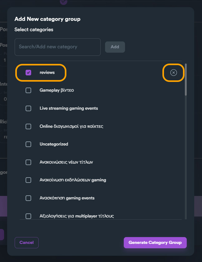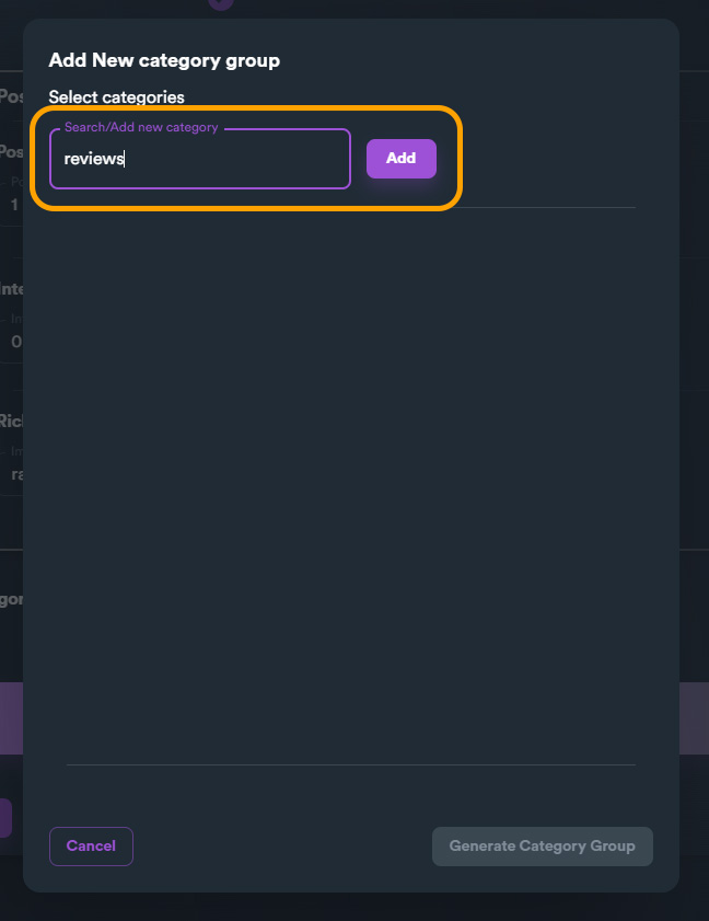 When you finish selecting categories, click on "**Generate Category Group**" button. The category will be generated.&#x20;