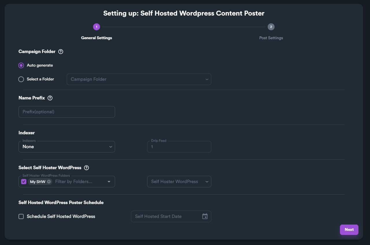 Self-Hosted WordPress Poster is a  **utility wizard** designed to help you quickly create posts on your self-hosted WordPress websites. It eliminates the need for setting up time-consuming campaigns, allowing you to effortlessly publish content on your websites.