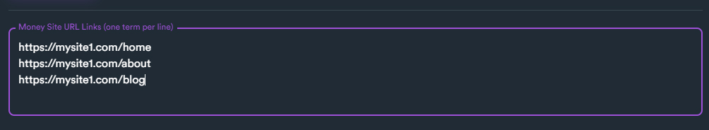 Here you enter all URLs that you want your campaign to target. You can enter multiple URLs (one per line).
